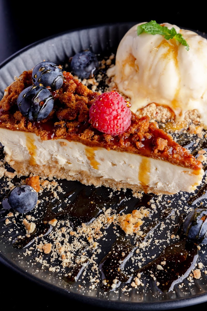 The burger section of the menu is equally impressive. The Wagyu Beef Burger with Onion Rings, Fries, and Burger Sauce delivers a serious flavor punch. The patty is juicy, while the crispy onion rings and golden fries add a satisfying crunch. It’s the kind of meal that quickly becomes a favorite for regulars. Meanwhile, if you prefer something lighter after dinner, the Biscoff Cheesecake offers a smooth, creamy finish with that distinctive caramelized biscuit flavor that dessert lovers appreciate.